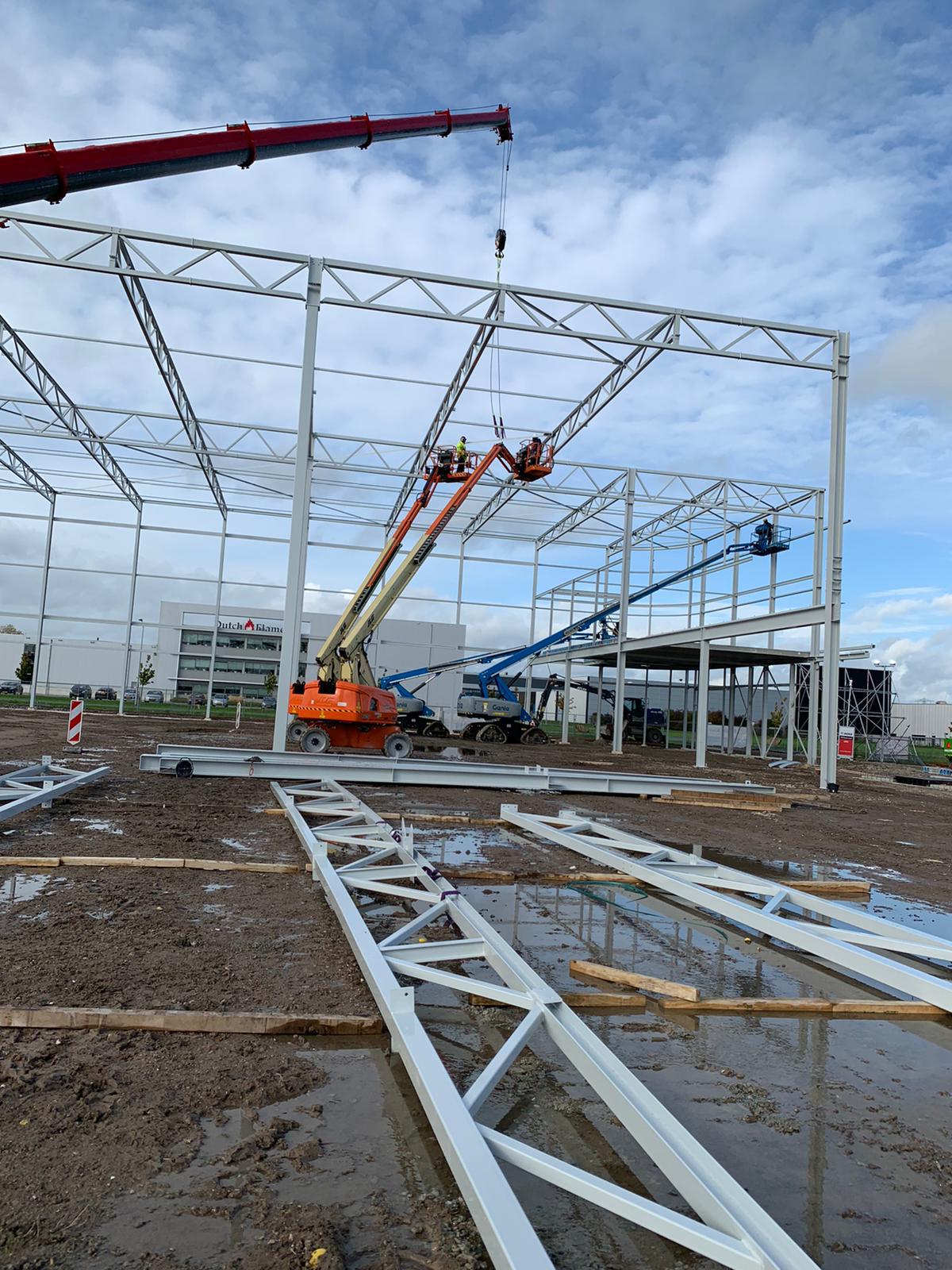 In opdracht van Hercuton b.v. leverde en monteerde IQstaal de staalconstructie voor het nieuwe distributiecentrum voor LIS Logistics b.v. in Almere. Het pand heeft een oppervlakte van 34.365 m² en het dak van het gebouw is volledig geschikt gemaakt voor toekomstige plaatsing van zonnepanelen. De bekistingsrand voor het afstorten van de mezzanine vloer met daaraan een demontabele koppeling voor het vastzetten van het hekwerk werden verzorgd door IQstaal. Ook de montage van de prefab beton wanden en kanaalplaatvloeren werden meegenomen in dit proces.